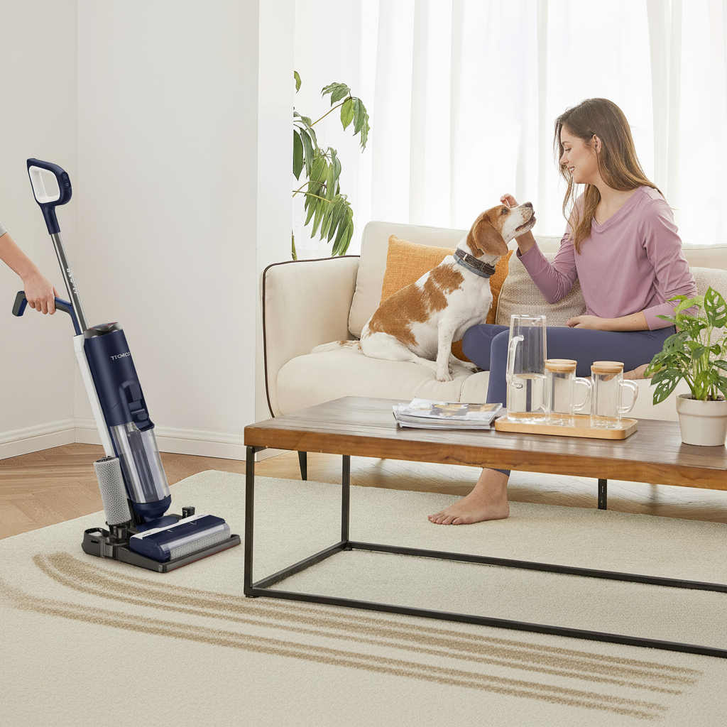 Combining vacuuming and mopping in one sleek device, it easily removes dust, debris, spills, and stubborn stains from hard floors.
